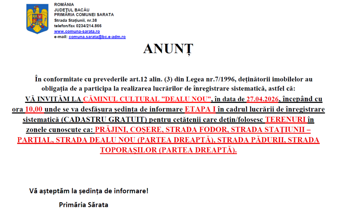 • Anunț cadasatru sistemtic