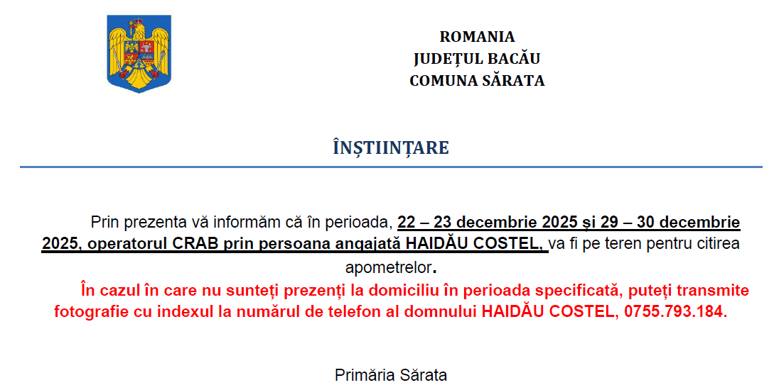Anunț citire apometre