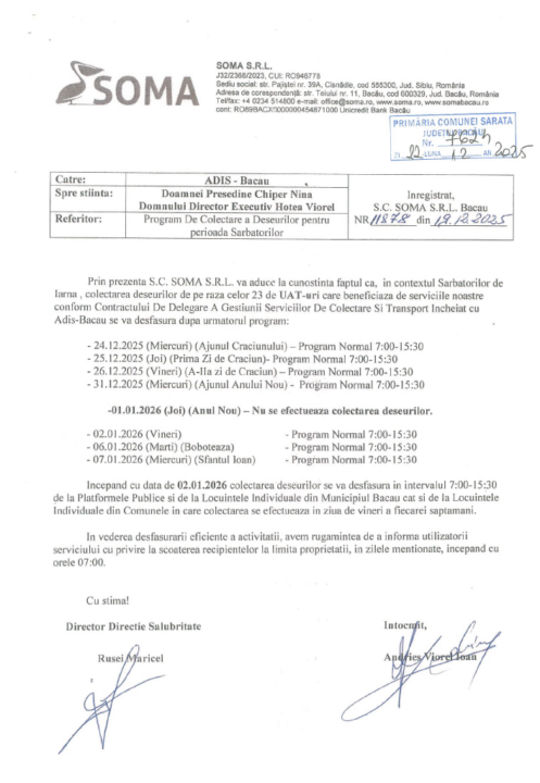 Anunț program SOMA pentru sărbători!